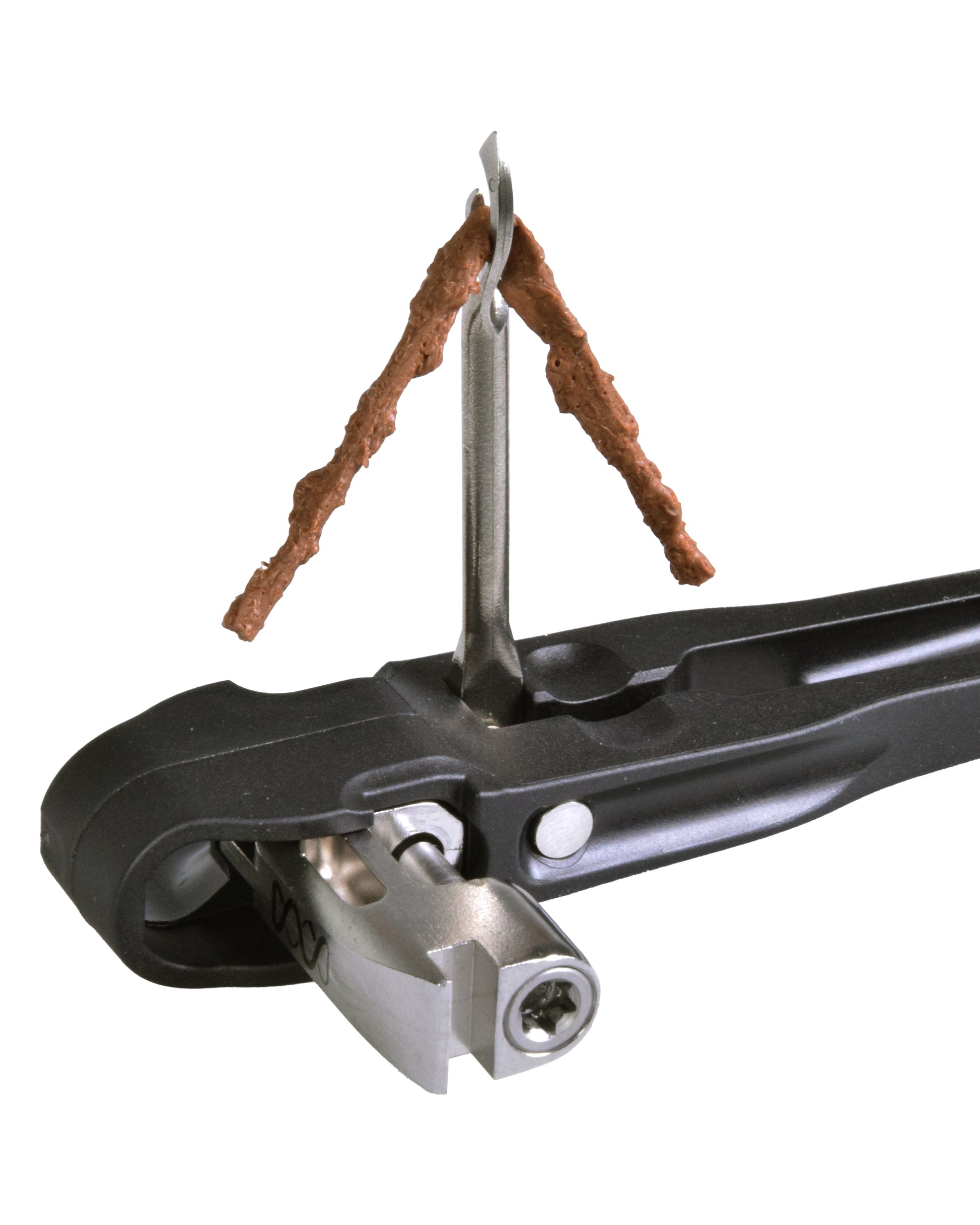 - The tire plug insertion tool is held in storage position by a magnet, in usage position it locks by a spring mechanism