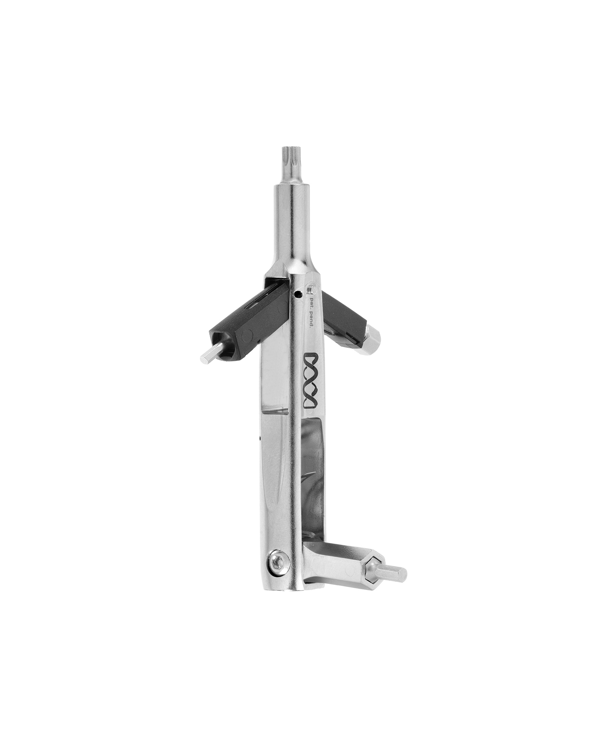 The IncredibleX offers the same appreciated and proven Allen key form factor as the Essential8. And it can not only be attached to the bike or carried in the pocket or backpack, but fits in the different cavities of the bikes thanks to the concept with the retractable lever. The clever spring mechanism makes it easy to fold and unfold the arm and keeps it firmly locked in place when in use.