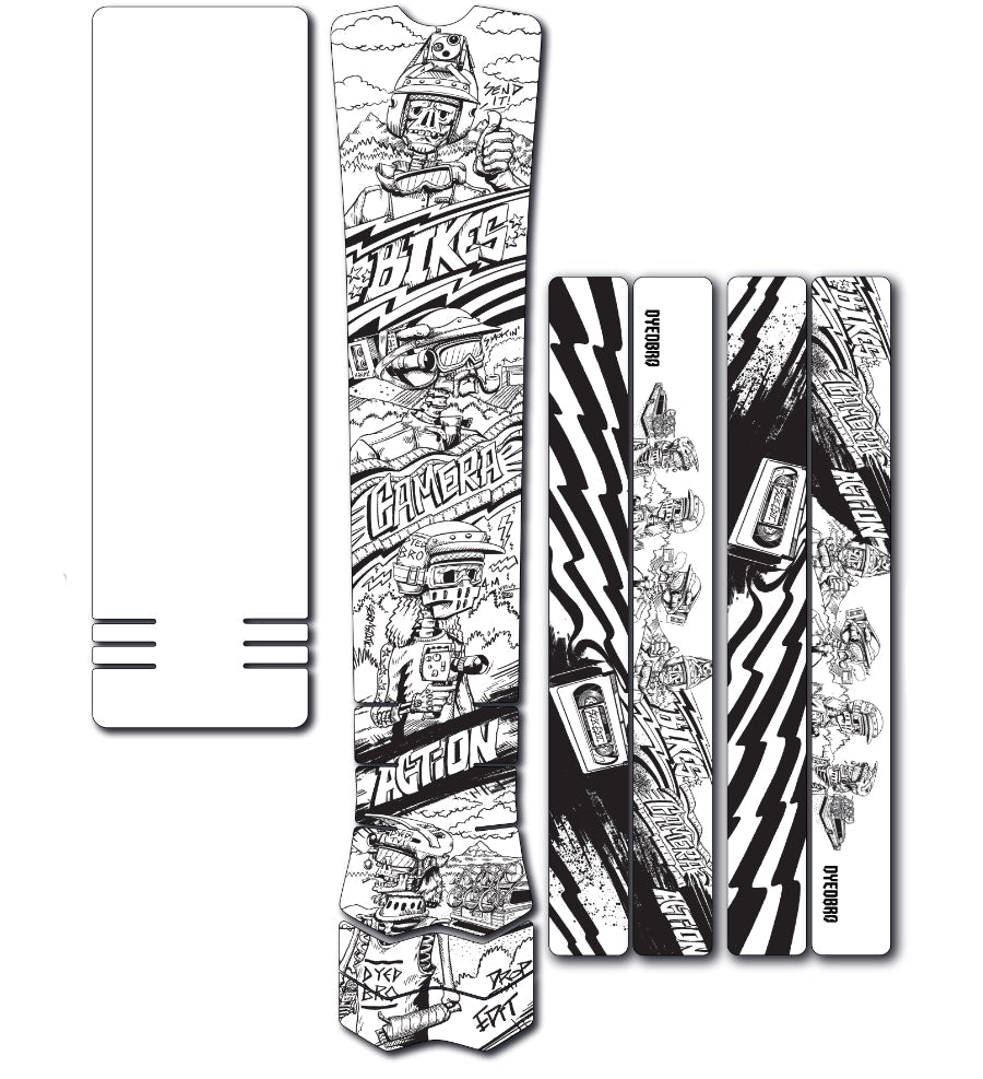 Titled 'Bikes, Camera, Action' and featuring unique illustration this one is super dynamic and full of detail.