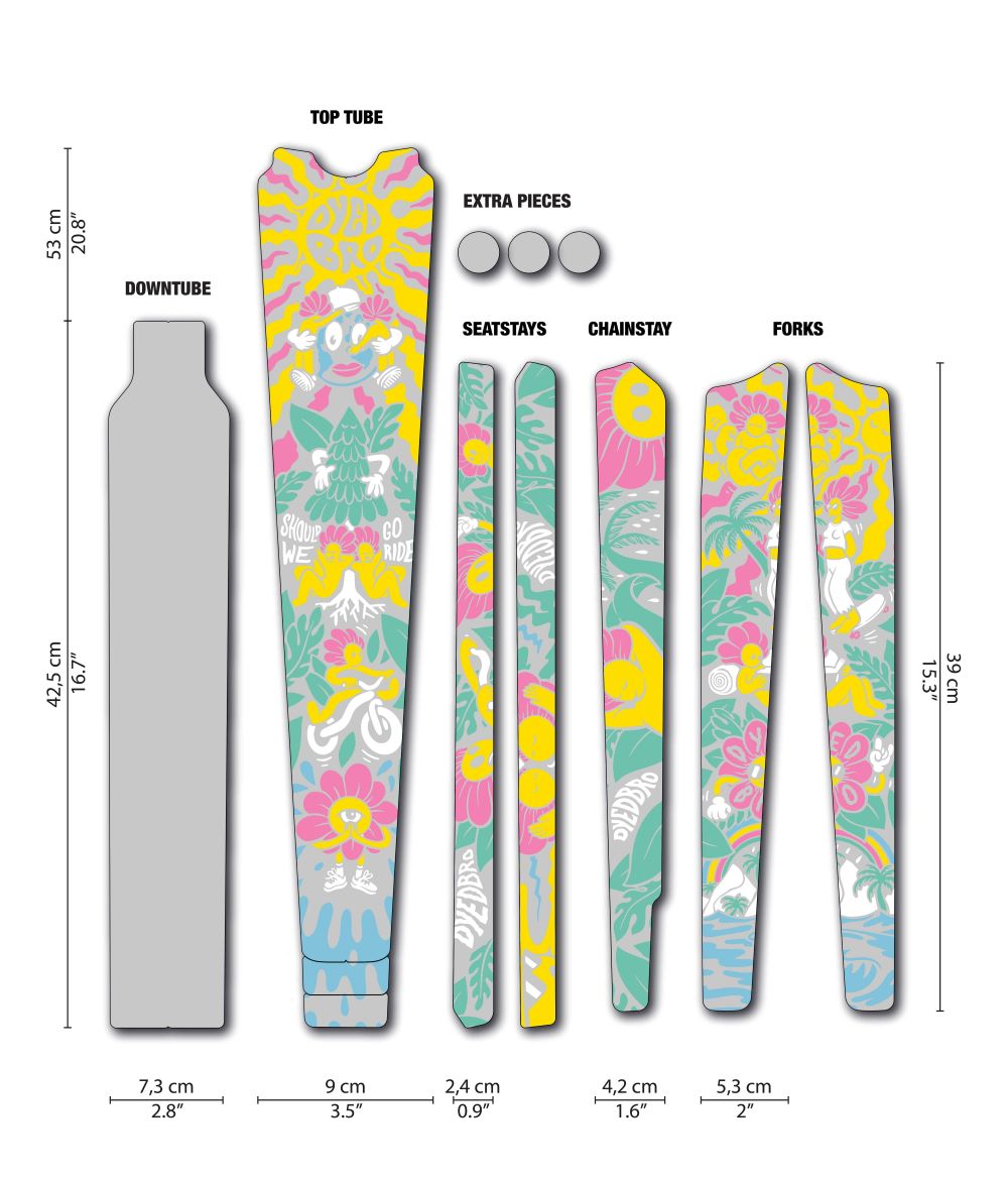 - Designed to protect frame top tube, down tube, forks, seatstays and chainstay with 12 pieces in total.