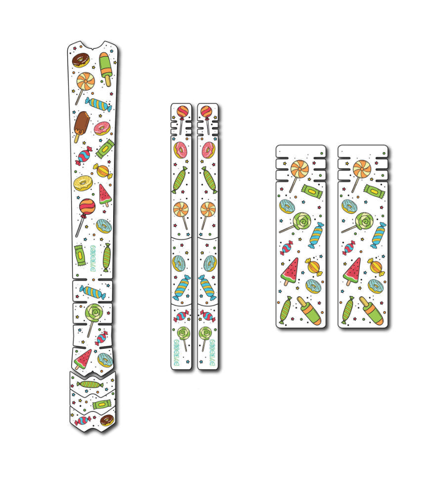 An all new frame protection kit just for little shredders. Kids bikes take just as much abuse as other bikes so it makes sense to protect them well. Candy features a heap of treats and contains top tube, chainstay and fork sections.