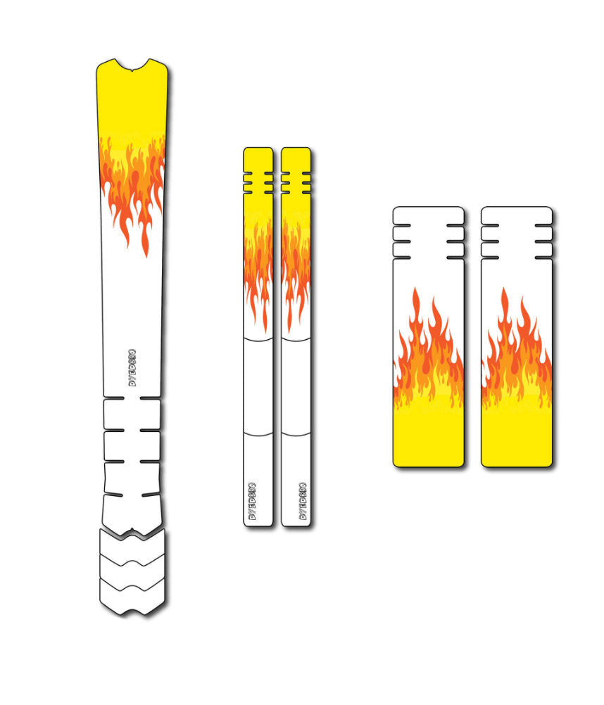 An all new frame protection kit just for little shredders. Kids bikes take just as much abuse as other bikes so it makes sense to protect them well. Flames are on all the fastest bikes. Contains top tube, stay and fork sections.
