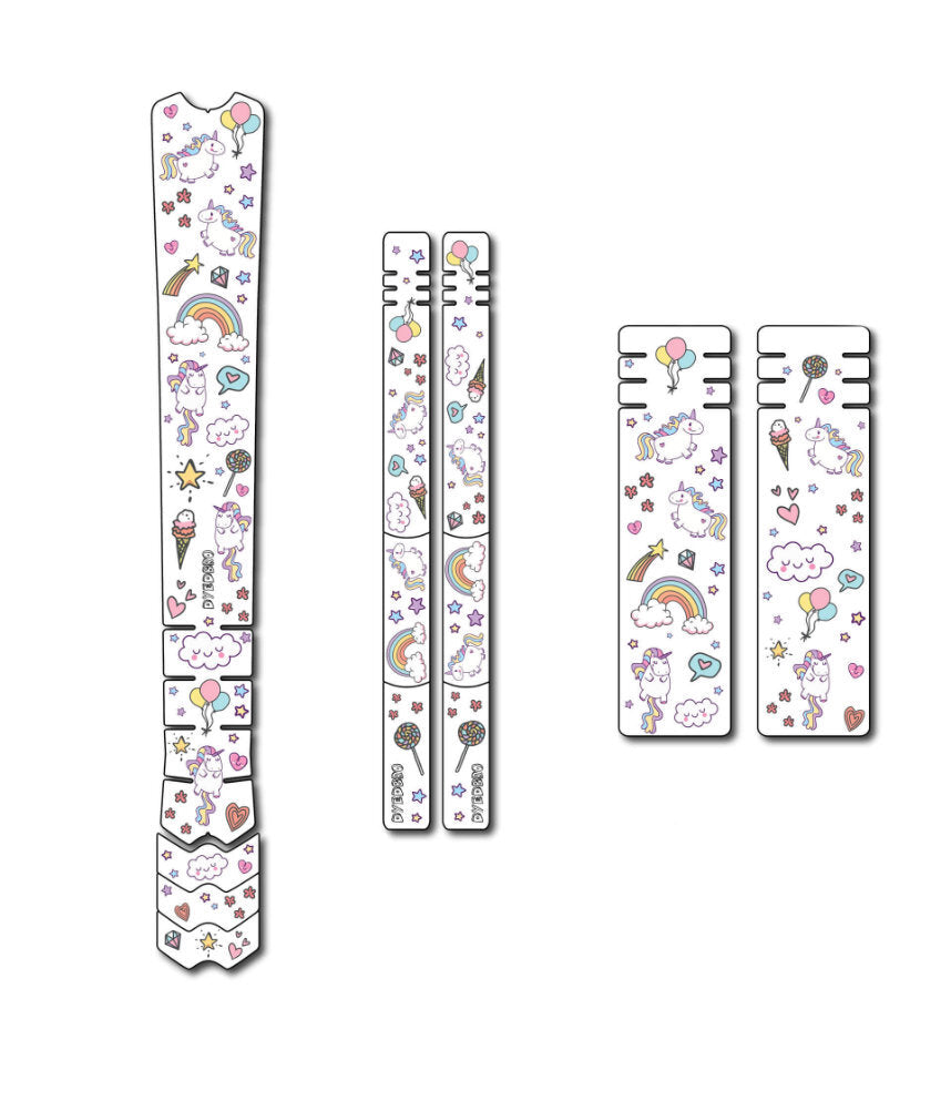 An all new frame protection kit just for little shredders. Kids bikes take just as much abuse as other bikes so it makes sense to protect them well. We've redesigned the Unicorn theme for this one - contains top tube, stay and fork sections.