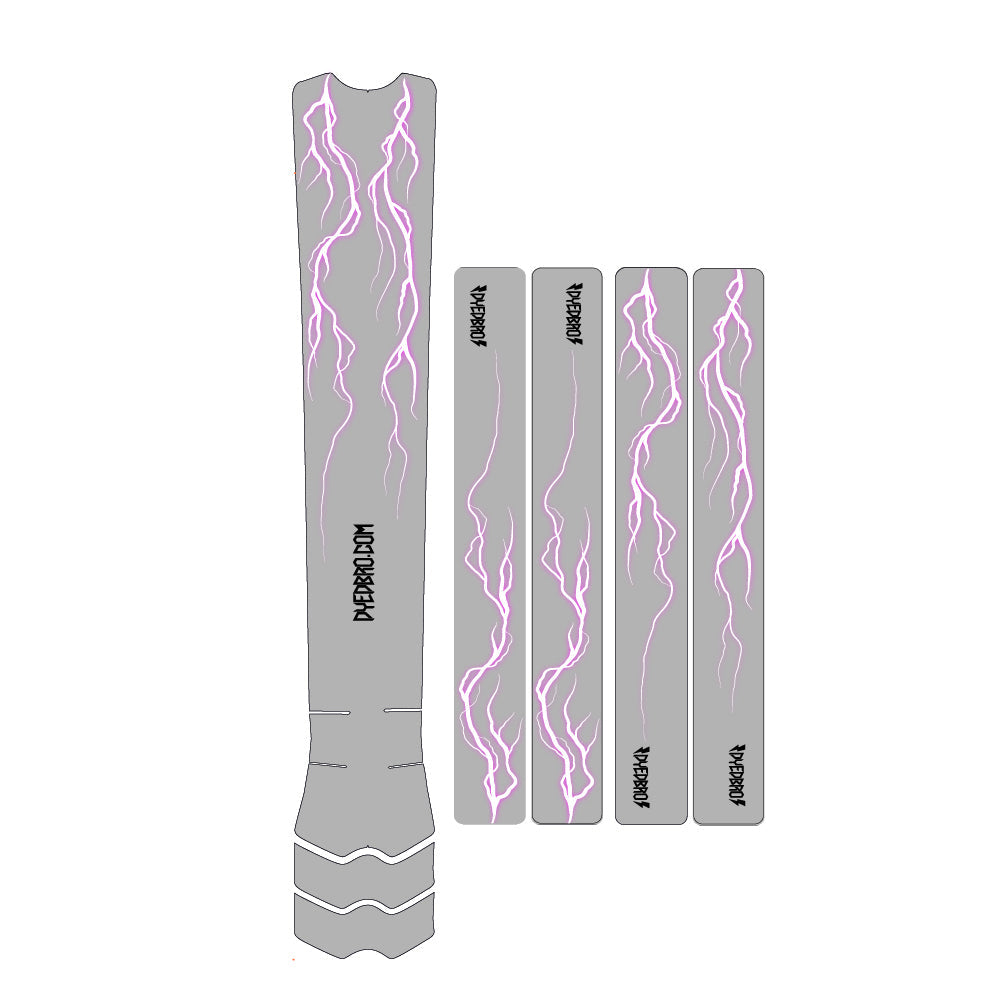 “It is not the roaring thunder that smites, but the silent lightning.” Be like lightning when you ride, or at least ride like it! This simple design will add a great touch to your bike while keeping it protected. With a clear background and just a couple of lighting bolts it will blend perfectly with your bike. Available in 4 color options so it matches to your bike and components.