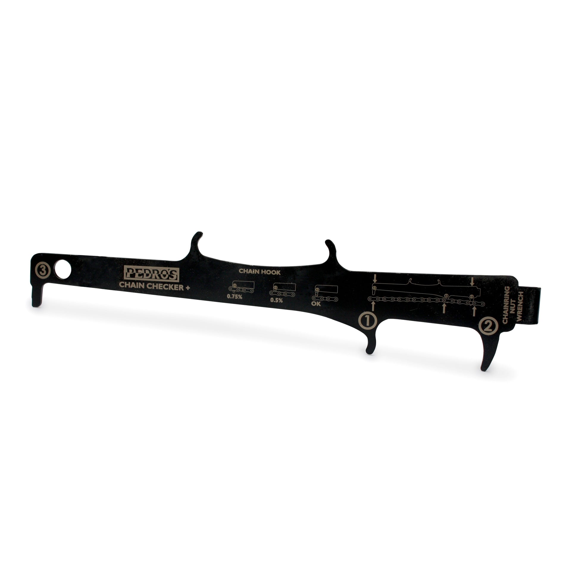 The Pedro's Chain Checker Plus II makes this task quick and easy offering a simple check of 0.5% and 0.75% chain wear. To ensure the maximum life from your chain and accuracy of measurement, the tool employs a three-point design which properly isolates pin wear from roller wear. Other two-point designs do not and can incorrectly indicate a worn chain, robbing the user of additional miles and money.