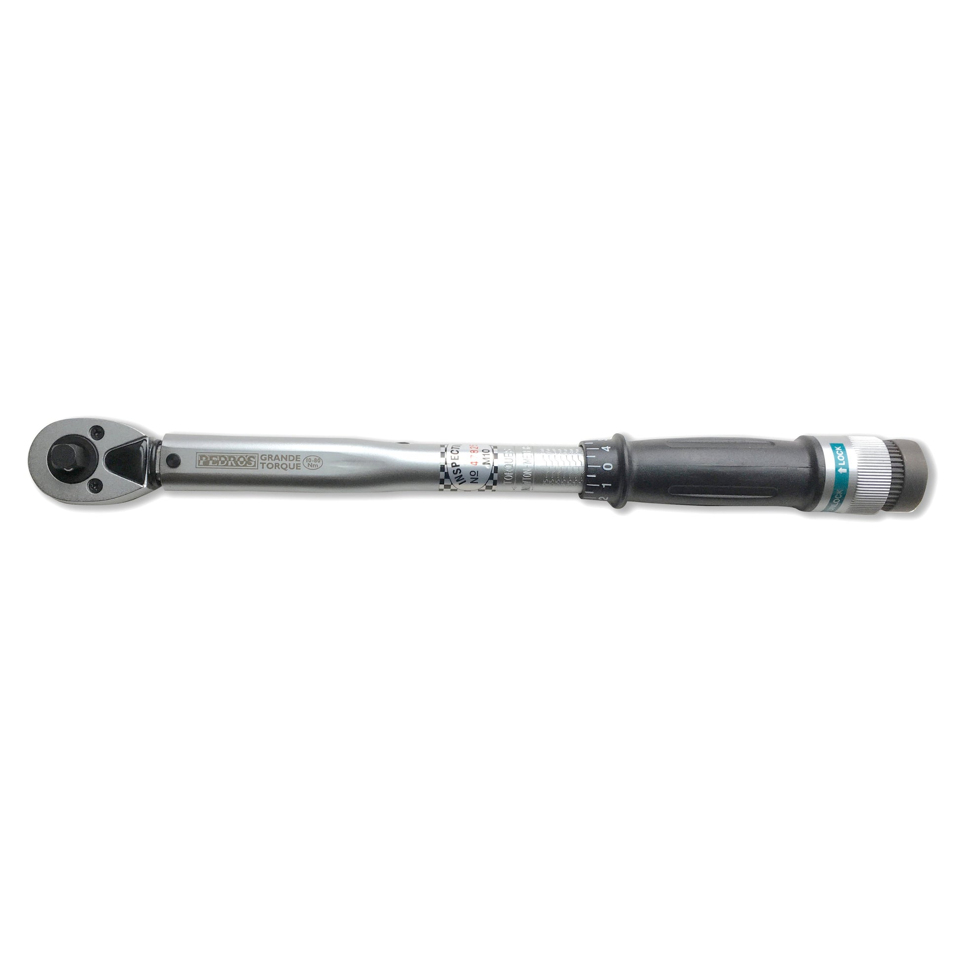 Pedro's Grande Torque Wrench features a 350mm length designed for left-hand or right-hand thread 10-80Nm torque settings required for bottom brackets, cassette lockrings, and other high torque components. A unique push-through, reversible, 3/8" ratchet drive delivers superior durability and reliability. This click-type torque wrench makes an audible “click” when desired torque is reached and is quickly set in 0.5Nm increments using a micrometer-style dial and simple locking mechanism.